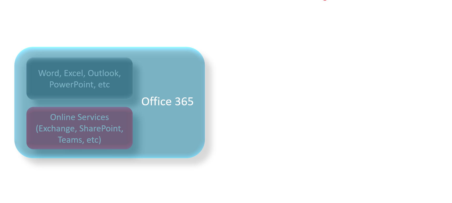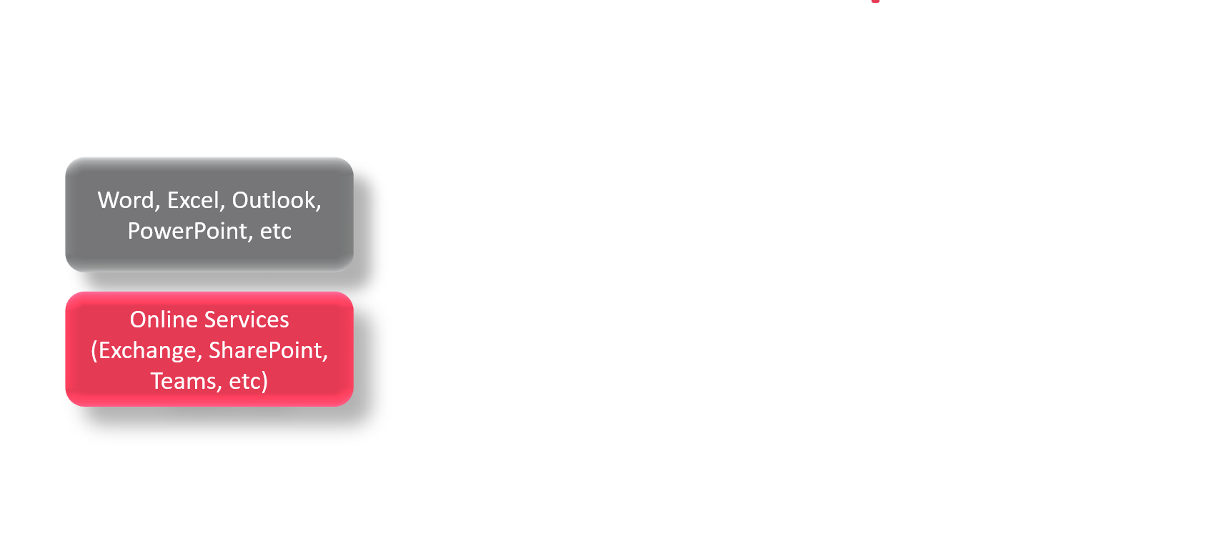Vroeger (zo’n 10 jaar geleden) gebruikten klanten (en sommigen nog steeds) de Office Servers (Exchange Server, SharePoint Server, Skype for Business Server) om samen te werken met de Office programma’s. Outlook heeft geen zin zonder een Exchange Server die de e-mail verstuurt. Vandaag de dag gebruiken veel klanten de overeenkomende online diensten: Exchange Online, SharePoint Online and Teams. Het is goed om te weten dat Microsoft Teams niet langer een standaard onderdeel is van Office 365 Enterprise abonnementen en apart besteld moet worden.