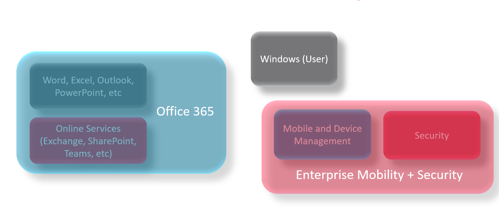Misschien bent u niet verrast dat de beheer- en beveiligingsoplossingen gebundeld zijn: Microsoft Enterprise Mobility + Security, of EM+S. Opnieuw is er keuze: E3 en E5 (geen E1) and hoe hoger het nummer, des te meer zit erin: