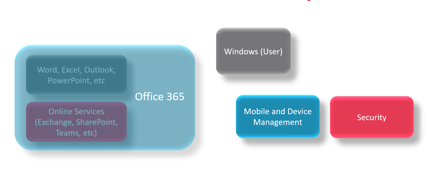 Microsoft 365 is de bundel dat de andere bundels bevat: Office 365, Windows (product) en EM+S. Beschikbaar als een E3 en E5 variant. Naast meer mogelijkheden van dezelfde onderliggende diensten, biedt Microsoft 365 E5 ook extra online diensten, zoals Teams Phone en Power BI.